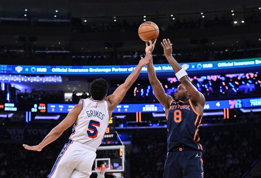 Apr 1, 2025; New York, New York, USA; New York Knicks forward OG Anunoby (8) shoots the ball while being […]