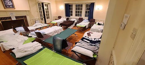 The Code Blue shelter is located in a beautiful old house that needs a lot of upkeep. Currently, only the first floor is usable, and there is just one bathroom. To accommodate more people, the second floor needs renovation. There are no available beds nearby, so many unhoused individuals are now sleeping in their cars or in parks and woods.