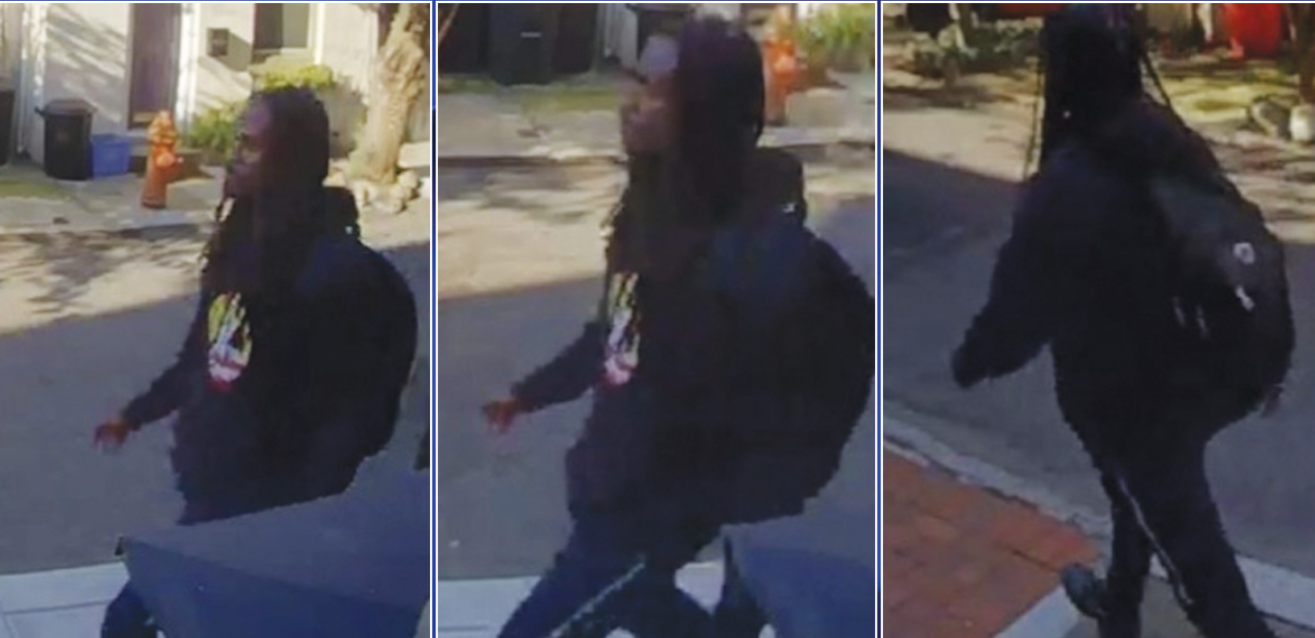 Police have released composite images showing a Black male, estimated to be 25–30 years old, roughly 5′11″ to 6′0″ tall, often wearing long braided hair tied into a ponytail, and sporting a light mustache and goatee.