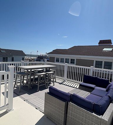 Rooftop ocean views with outdoor sofa & bar-height dining table