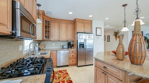 This dazzling, exclusive, vacation home includes all new beautiful 24×24 Italian Tile throughout entire home, a large granite center island (perfect for entertaining), with granite counter tops in the kitchen (& baths); the kitchen is state of the art with stainless steel appliances with all the necessities making this spacious, & fully equipped kitchen, great for family meals.