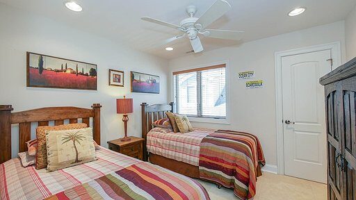 Amenities galore that include Central air, ceiling fans, 60′ LCD/HDTV above fireplace, Blu-ray DVD with built in Wi-Fi, surround sound, 32′ LCD TVs in bedrooms, all wall mounted to alleviate the clutter and provide you with plenty of dresser top space for your belongings, plus luggage racks in every room located in the spacious closets! Unlimited local phone service, Wi-Fi, central vac, gas fireplace, two sets of washers & dryers (1 upstairs in a beautifully equipped separate laundry room & 1 downstairs located in fully outfitted, exclusive to the 2nd floor, cabana bathroom), to just name a few. Video intercom system upstairs gives you the capabilities to let your guests in without having to go downstairs.