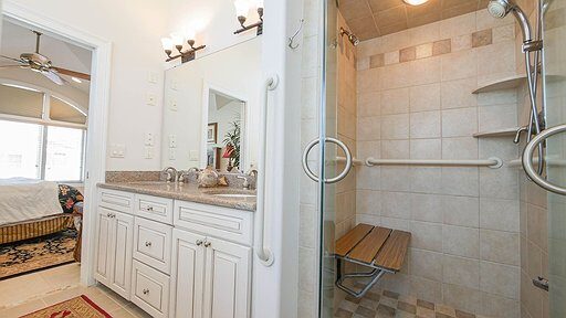 All our bathrooms are equipped with Handicap safety guard rails to help those with physical handicaps use the bathroom facilities with more ease and comfort. Wall mounted handicap shower seats are located in both the Master bathroom and Cabana bathroom to help facilitate bathing while contributing to bathroom safety. Simply fold it up and store out of the way or keep it down to provide convenient and comfortable seating for people with difficulty standing for any length of time.