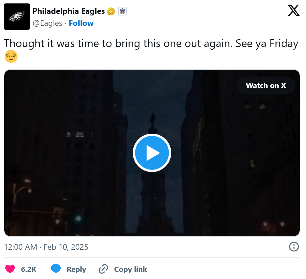 The reason you can’t click on the video is because that’s a screenshot. Why? Because the Eagles deleted the tweet soon after – throwing the date of the parade back into flux.
