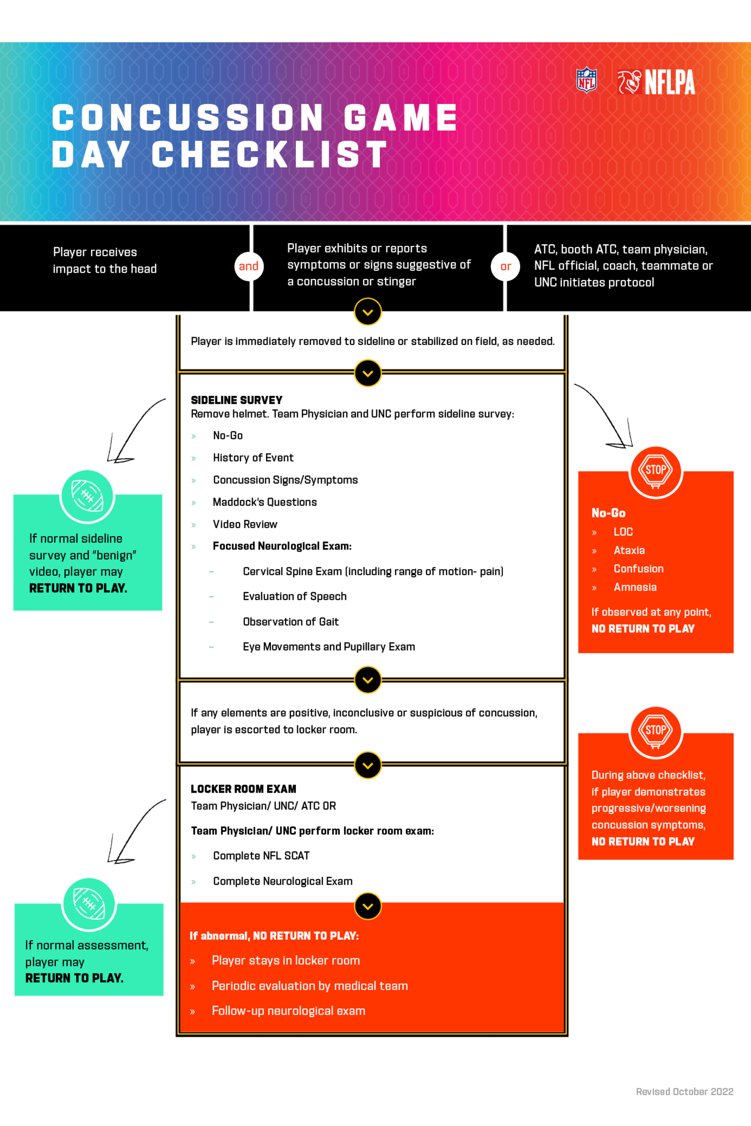 The NFL provides a second handy graphic to describe the five steps of the Return-To-Participation Protocol: