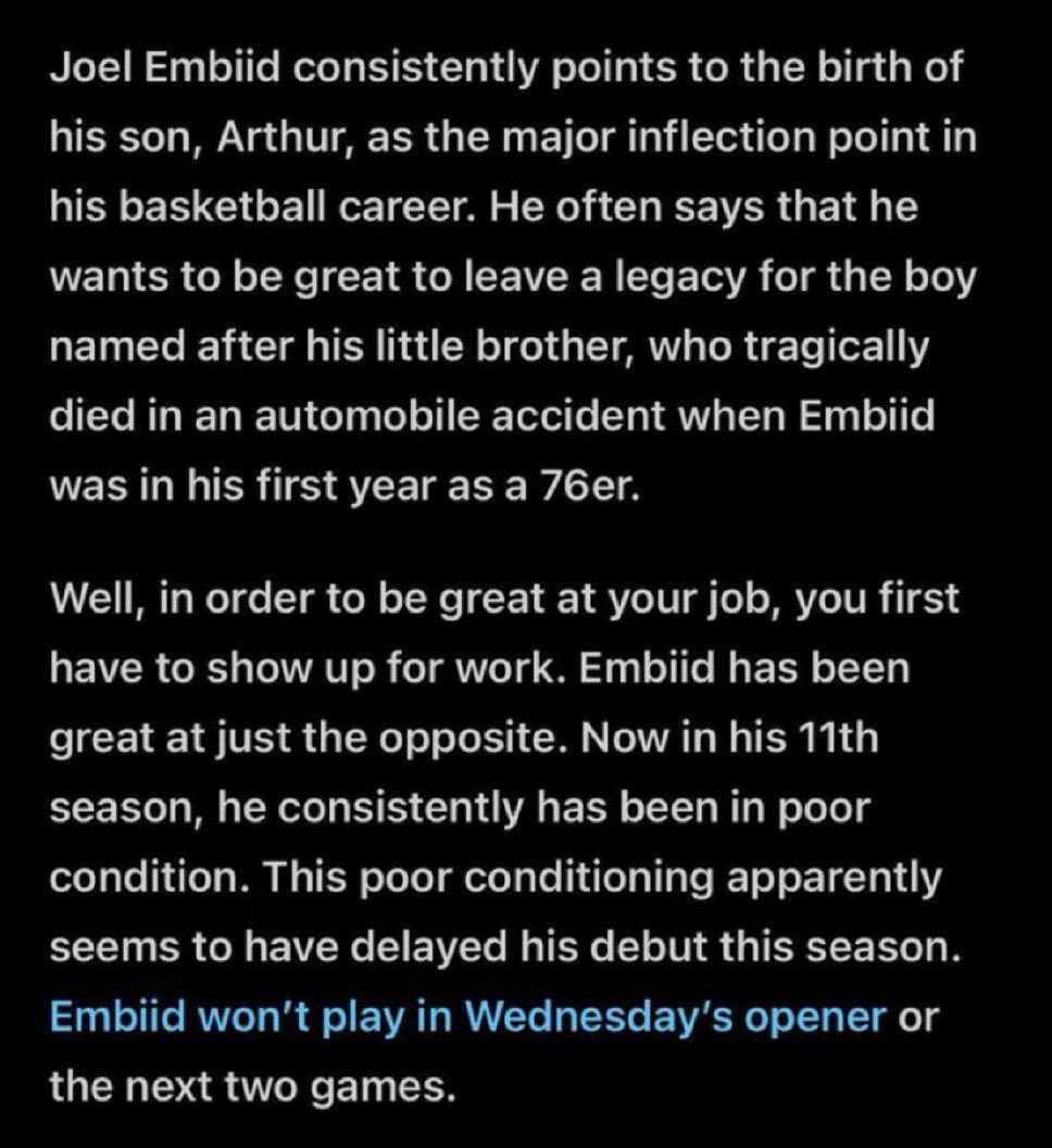 We may not all be subject to the level of vitriol that professional athletes endure. But we’ve all had conversations where someone is fucking around way too much. And we’ve all felt the sadness of realizing that someone would never find out. When we see Kelce and Embiid fighting to restore basic human decency, it gives us hope for a brighter future.