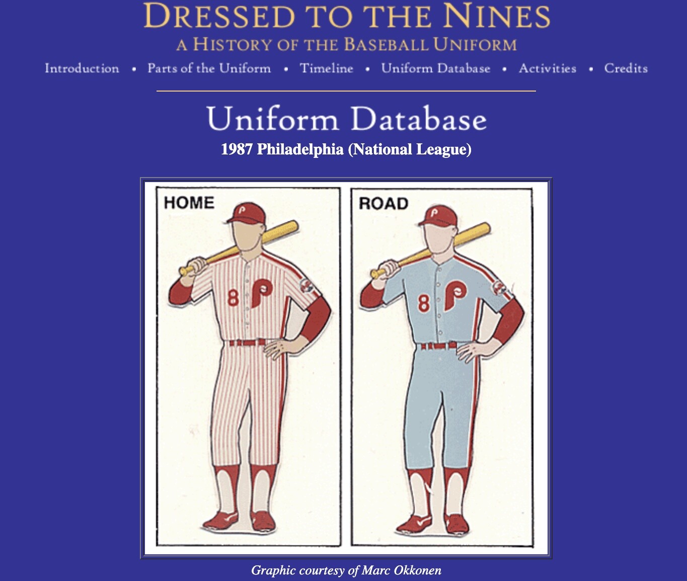 Phillies 1987 home and road uniforms, via Dressed To The Nines, a Baseball Hall of Fame exhibit.